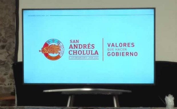 El gobierno electo del municipio de San Andrés Cholula presentó su imagen institucional, teniendo como imagen central la cabeza de Quetzalcóatl, al fondo un círculo que emula los cuatro elementos con grabados al estilo náhuatl, y con el slogan «Valores que hacen Gobierno».
