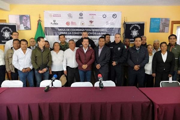 La junta auxiliar de Santa María Acuexcomac fue sede de la “Mesa de Coordinación Territorial para la Construcción de la Paz”, tras los disturbios registrados el pasado viernes donde la oportuna aplicación del protocolo de linchamiento impidió una tragedia.