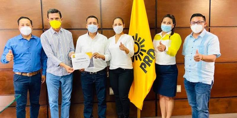 El candidato de la alianza PAN-PRD, por San Andrés Cholula, Edmundo Tlatehui Percino, recibió de manos del dirigente estatal perredista Carlos Martínez Amador, la constancia que lo acredita como abanderado del Partido del Sol Azteca para la alcaldía.